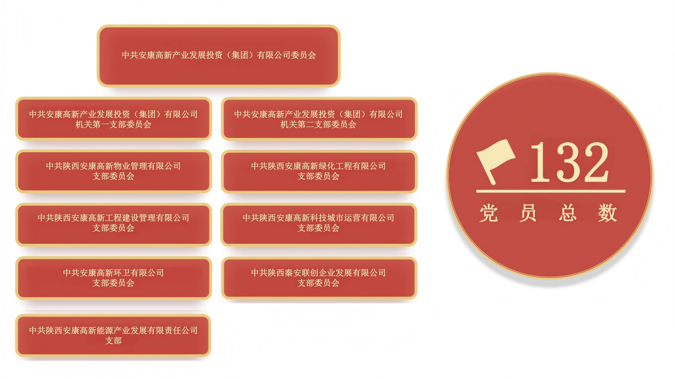 高新集團(tuán)黨總支成立于2017年,于2022年升格為高新集團(tuán)黨委,現(xiàn)有黨委委員6名,其中書記1名,副書記1名,紀(jì)委書記1名,下設(shè)9個(gè)黨支部,黨員總數(shù)132名。